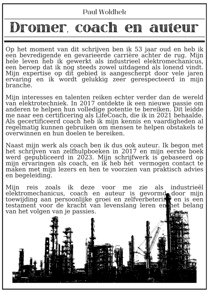 Ik ben Paul, gediplomeerd Motivatie Coach, schrijver van zes gepubliceerde boeken, en een mens met een missie: de wereld niet beter, maar gelukkiger maken.